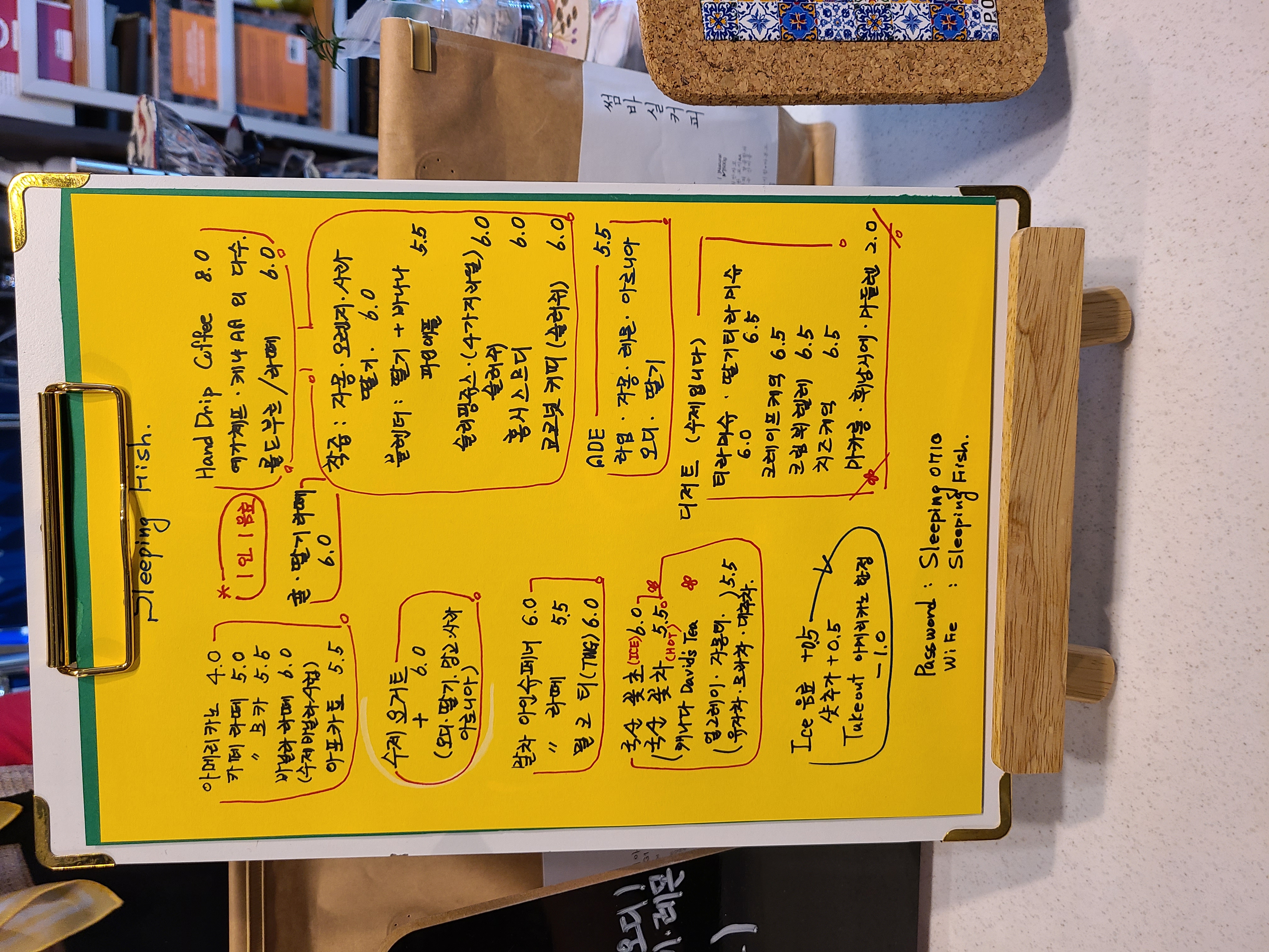 샤로수길은 사람이 복작복작하죠 ㅠ 그런데 조금만 발품을 팔아보면 조용하고 느긋한 내 시간을 즐길만한 카페들이 있어서 이렇게 블로그에 알려드려요! 무표정으로 빨대를 물고 있는 물고기가 인상적인 슬리핑 피쉬라는 카페입니다!!