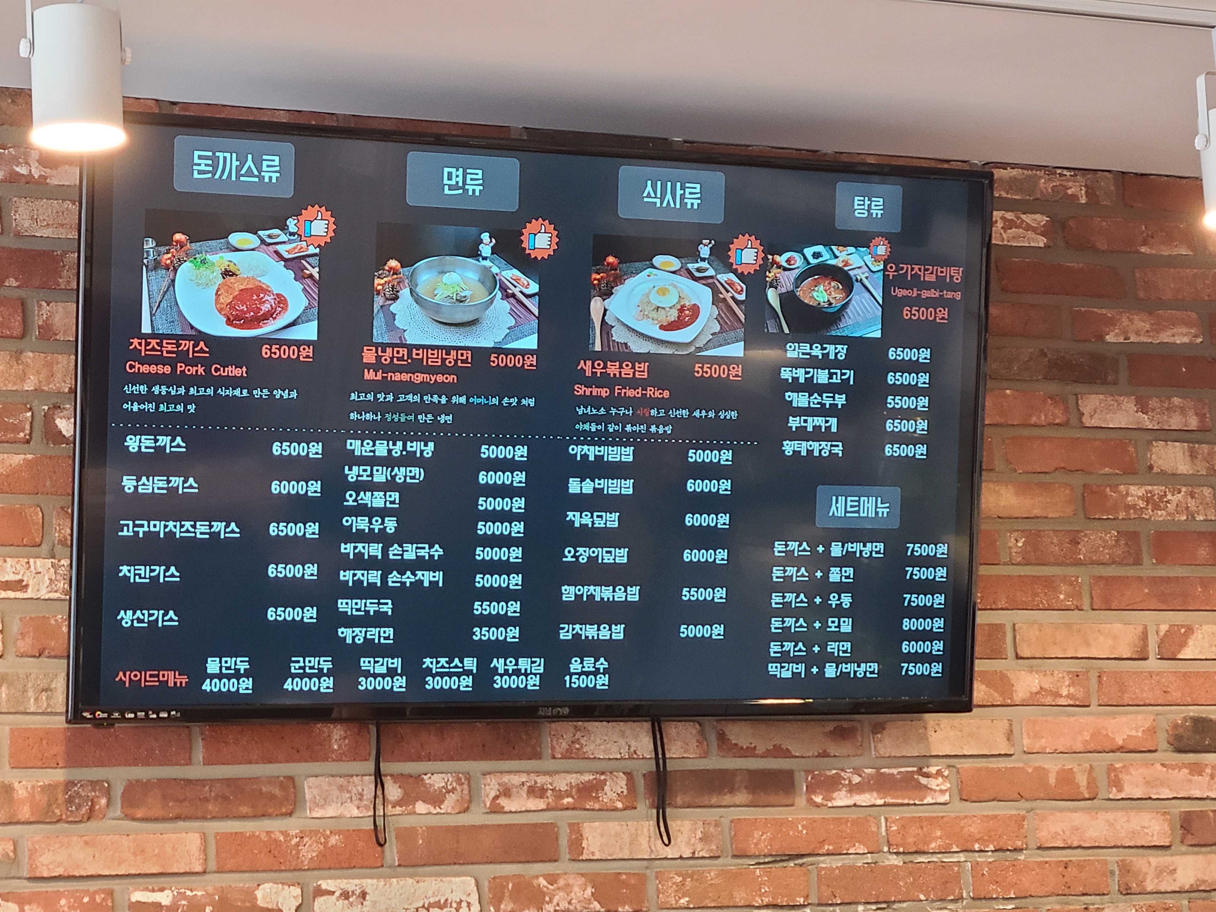 가게 입구부터 그냥 지나칠 수 없는 느낌입니다! 왕돈까스라니..... 제 모스트 메뉴이기 때문에 한번 들어가 봤어요!!