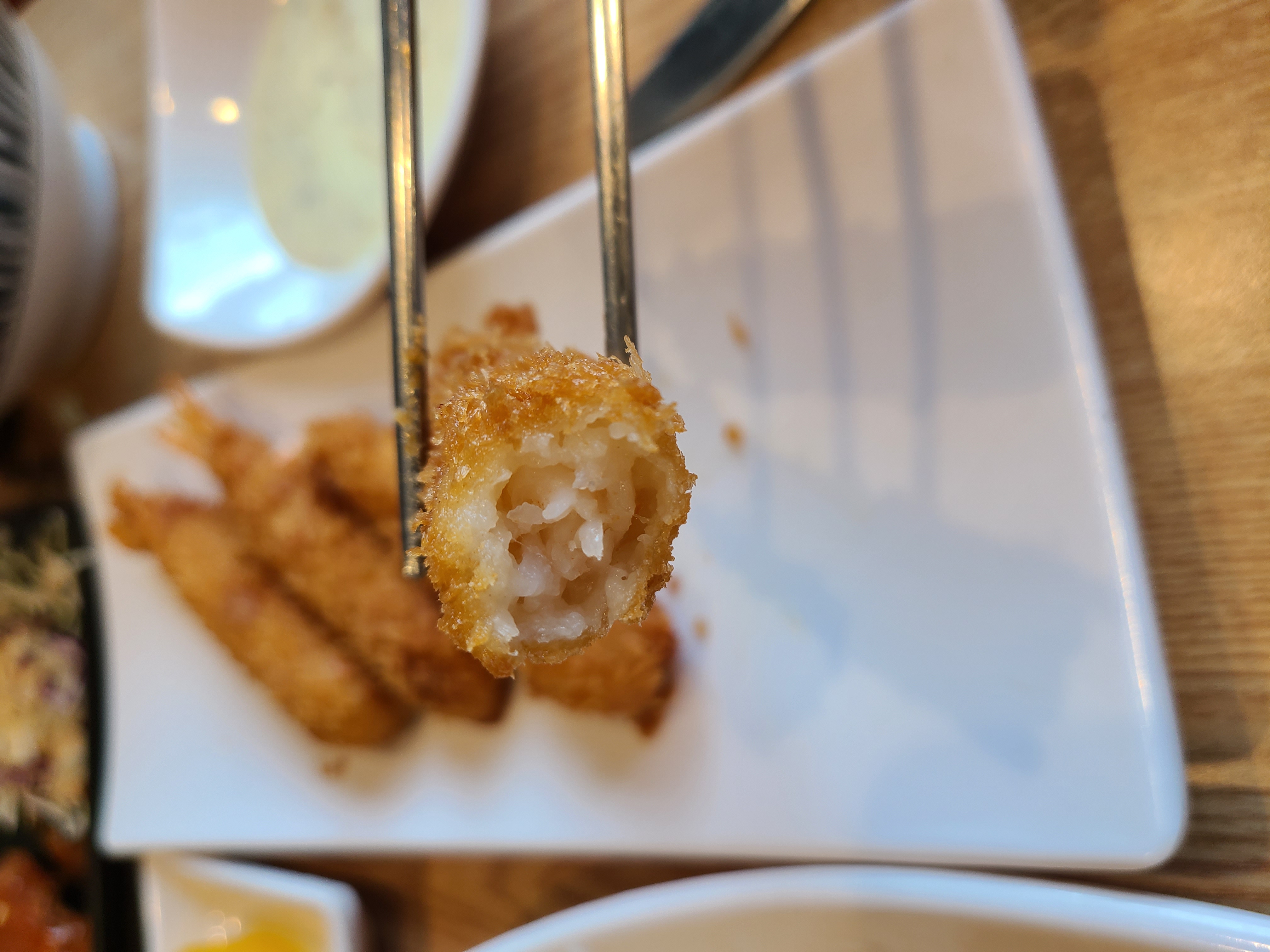 새우살이 탱탱 튕겨 나올 정도로 단단하진 않지만 새우 향을 느끼기에는 충분했습니다. 3,000원에 고오급진 새우를 바라는 건 제 욕심이죠 ㅋㅋ 3,000원 이상의 만족감을 주는 새우튀김이었어요!