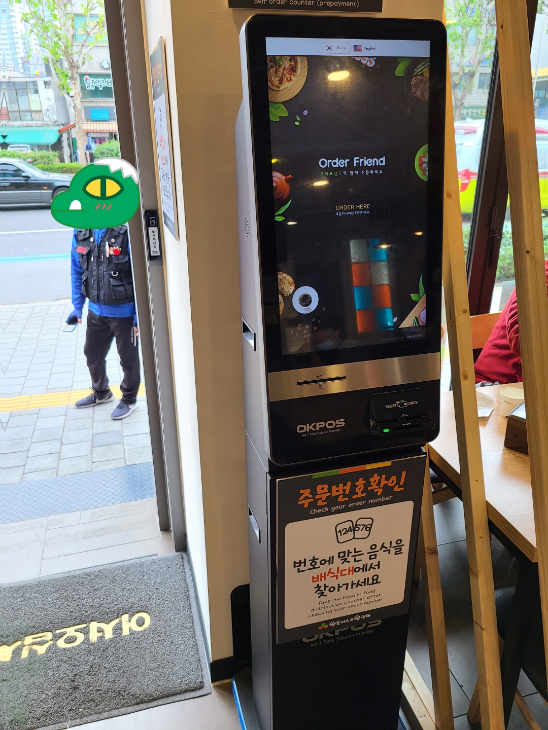 이 곳은 셀프서비스로 이루어지는데요. 입구에 들어서자마자 주문기가 있어 바로 주문해봤습니다!