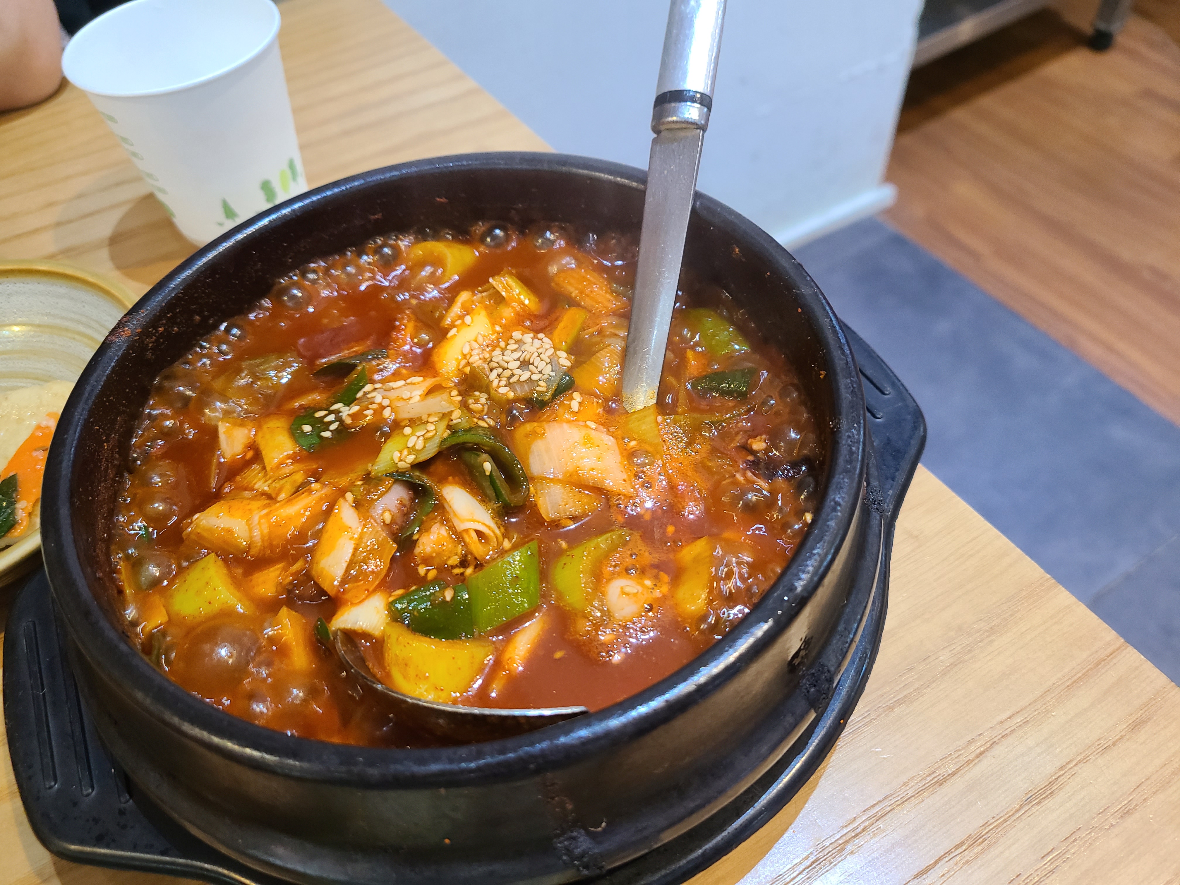 불고기가 익어갈때 쯤 낙새볶음이 나왔습니다! 낙지다리가 굵어서 좋았구요 새우도 칵테일새우보다 큰 새우를 사용하더라구요. 메인 재료들이 굵직해서 씹는 맛이있었습니다. 하지만 양념은 떡볶이 양념같아서 조금 아쉬움이 남았네요!!