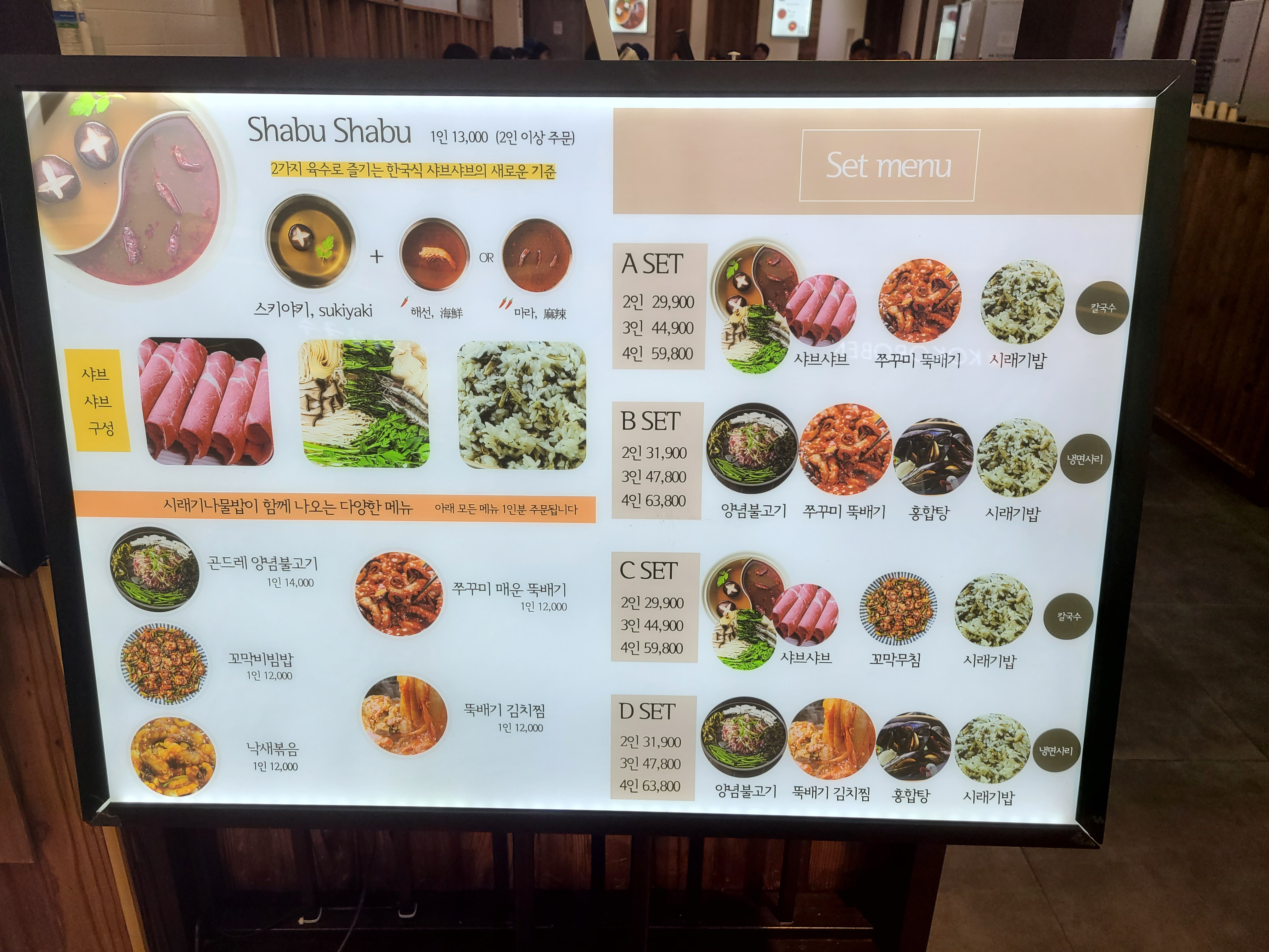샤브샤브랑 양념 불고기가 메인메뉴 더라구요!