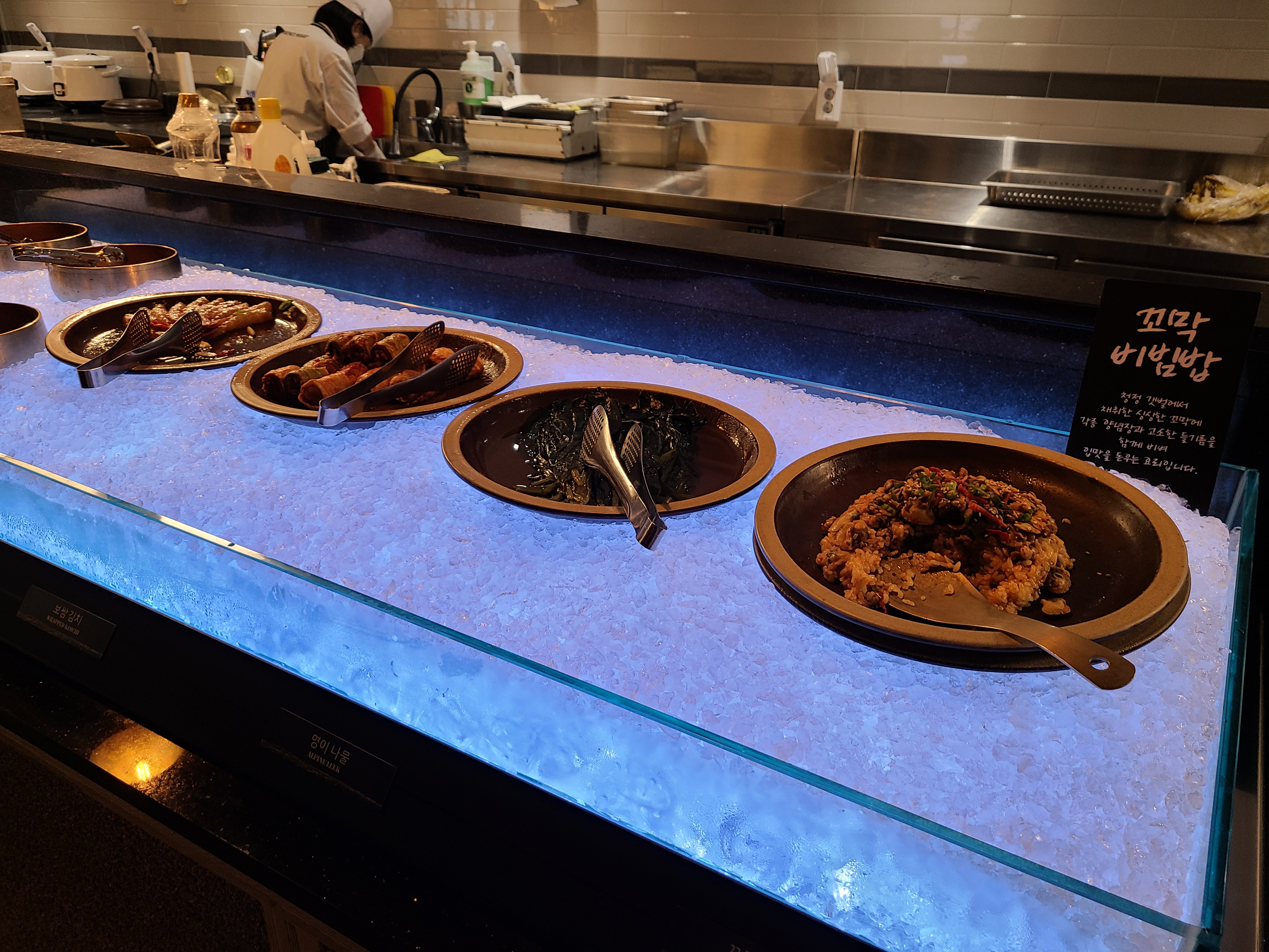이렇게 한식코너도 준비되어 있고요. 제 뱃속에 김치는 오늘 자리가 없습니다. 한식코너에서는 꼬막 비빔밥만 조금 먹어봤어요! 정말 조막만 하게 펐는데도 꼬막살이 한가득 딸려 오더라고요!! 리얼로다 꼬막반 밥 반이었습니다.