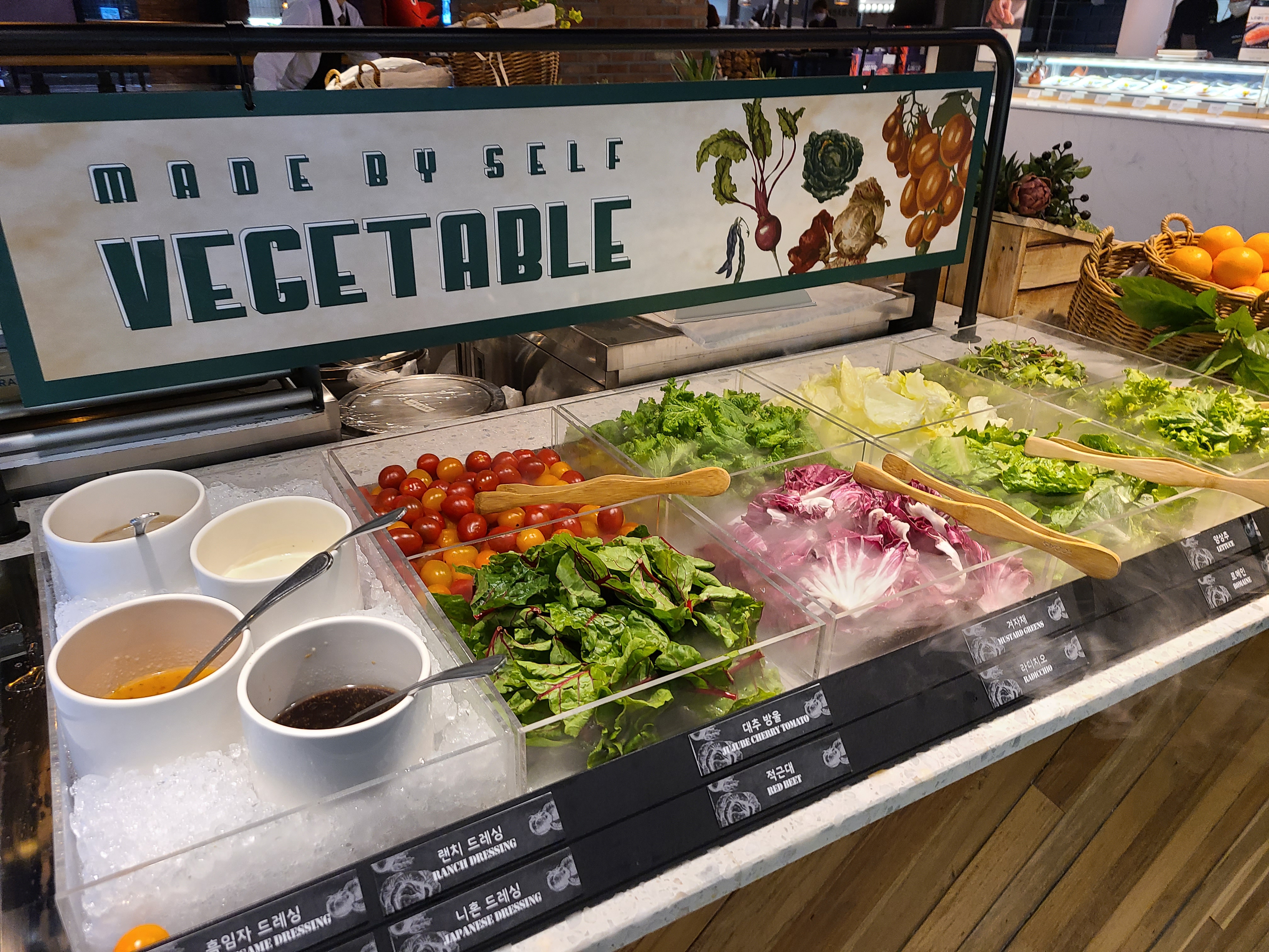 야채와 샐러드 코너도 있었습니다. 하지만 저는 다른 걸로 배를 채워야 하기에 눈길 조차 주지 않았죠...