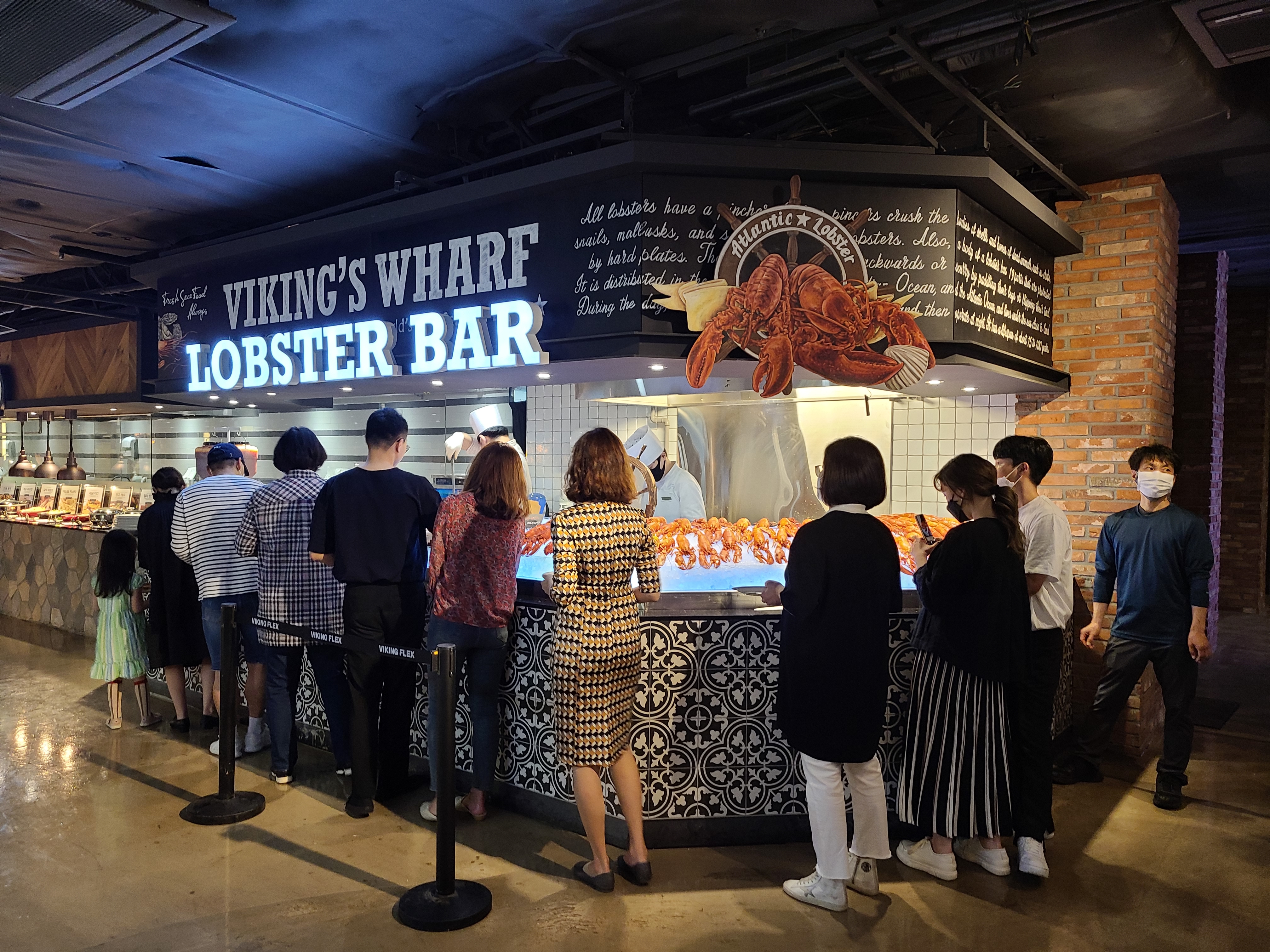 사람들이 다 비슷비슷한 루트로 움직이는 것 같아서 주문이 많이 밀리니 제 생각에는 입장하자마자 그릴부터 주문하고 랍스터를 영접하는 게 좋을 것 같아요!!