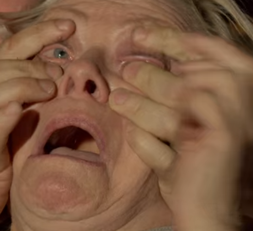 정신이상자가 집에서 난장 피우는 장면은 정말 공포를 정말 잘 살려냈습니다. 장면 전체를 보여주면 스포가 되기에 범인 얼굴은 안 나오게 끔 했습니다....... 정신이상자가 억지로 그것을 보게 하려고 눈을 강제로 뜨게 하는 장면입니다..