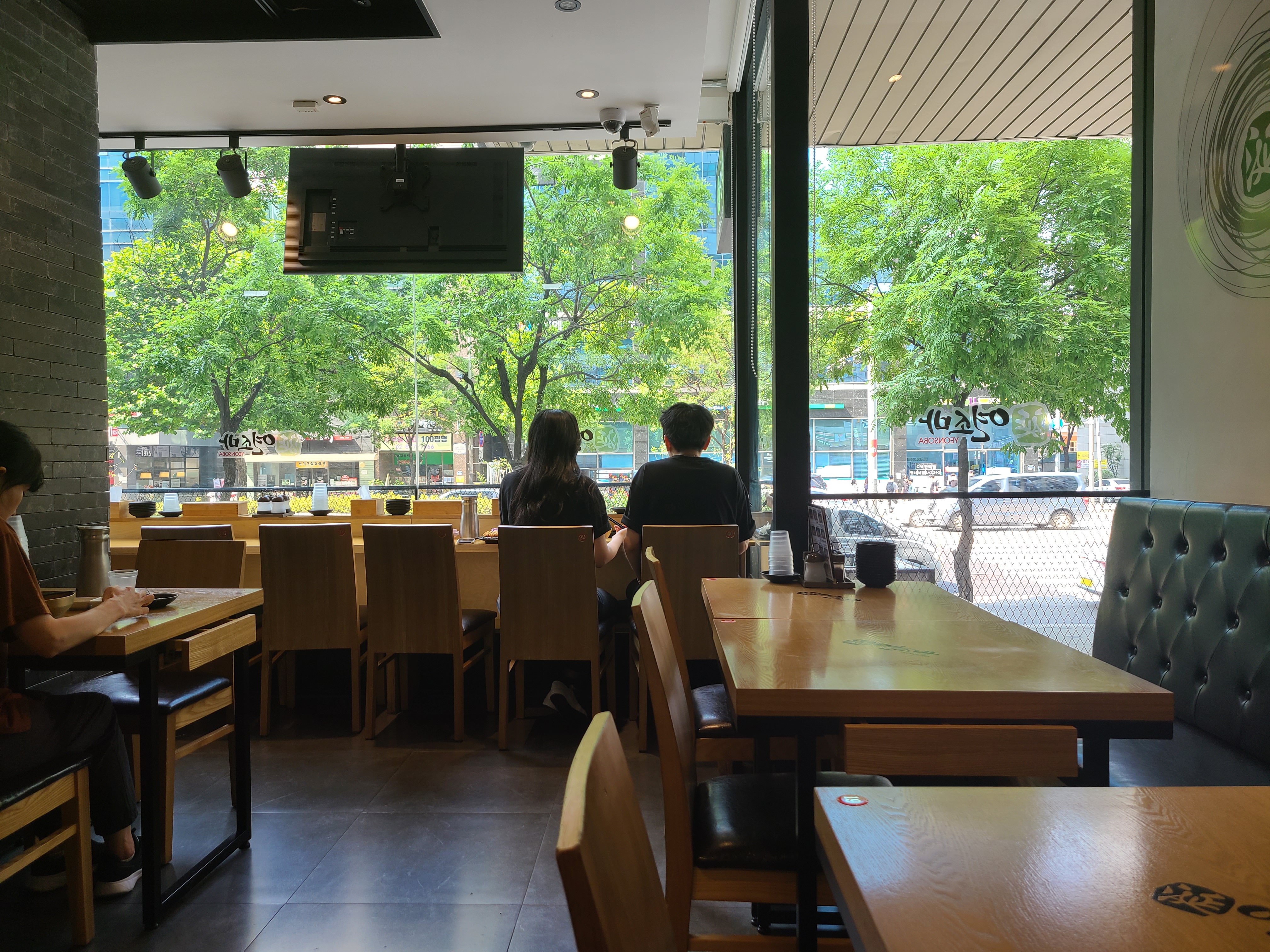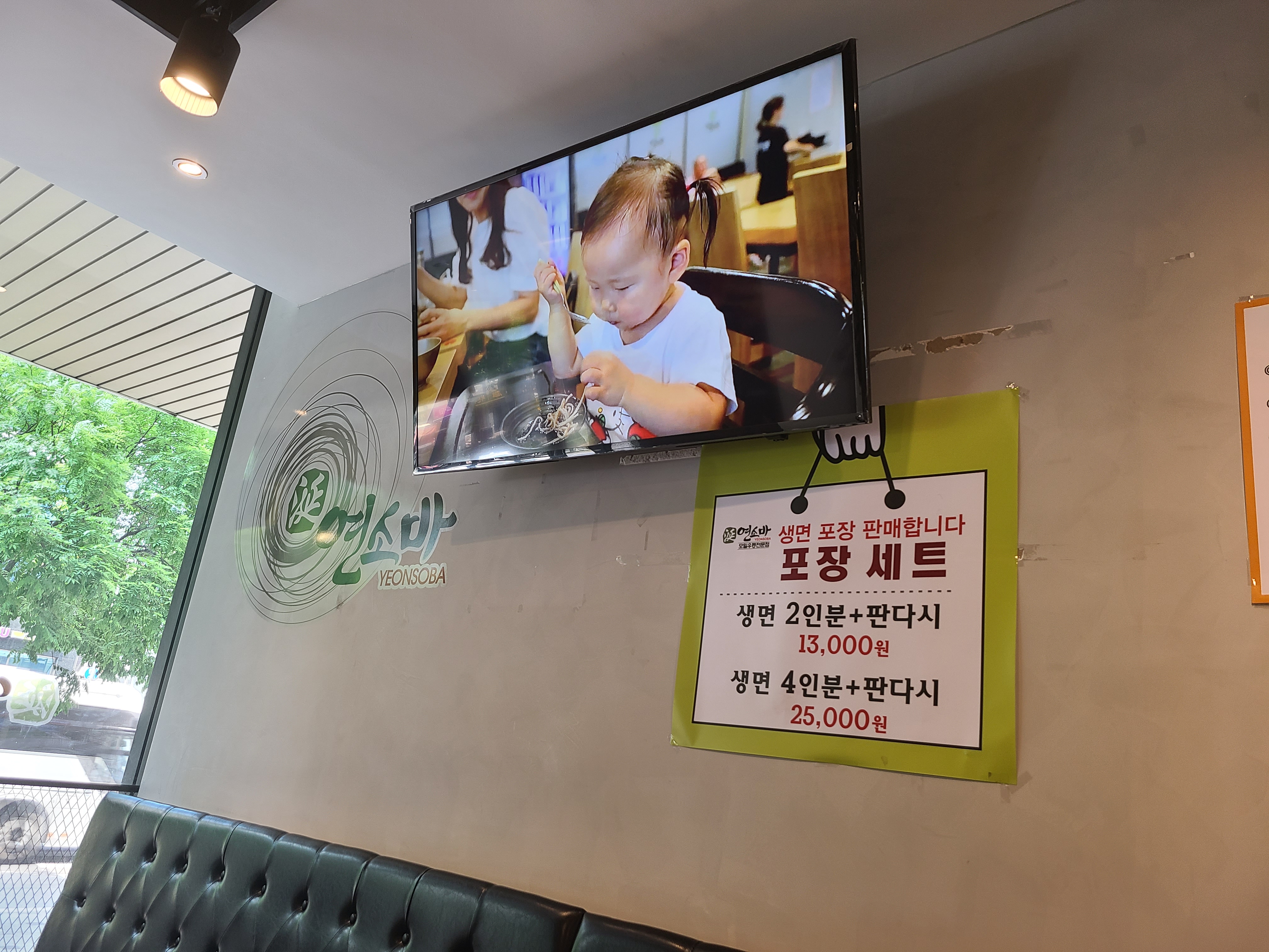 안쪽 티비에서는 메뉴 사진과 SBS 생활에 달인에 나왔던 영상이 나오고 있었고 안쪽은 새로 인테리어 한지 얼마 안 된 듯한 느낌이었어요!! 점심시간이 조금 지난 시간이라 사람이 꽉 차 있지는 않아서 좋았고 점심시간에 맞춰요면 사람으로 꽉차 있을 것 같네요!!